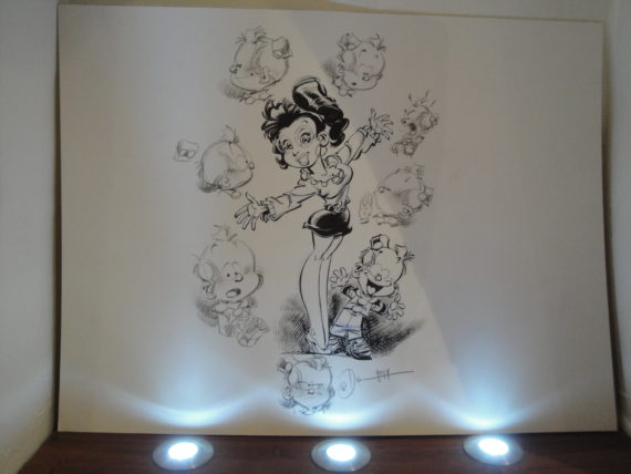 Superbe dessin original au crayon pour les portraits et à l’encre de chine pour le Petit Spirou et Mademoiselle Chiffre, réalisé par Dan Verlinden, l’assistant de Tome & Janry pour la série » Le petit Spirou ...