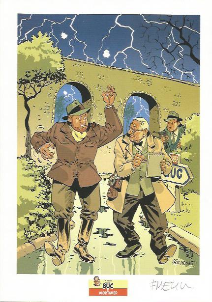 Ce portfolio intitulé « Blake et Mortimer » contient 16 illustrations: 8 dessins de couvertures (couleurs) + 1 dessin couleurs inédit représentant en arrière plan la Cathédrale de Strasbourg, ses toits avec leur cigognes + 7 dessins crayonnés ...