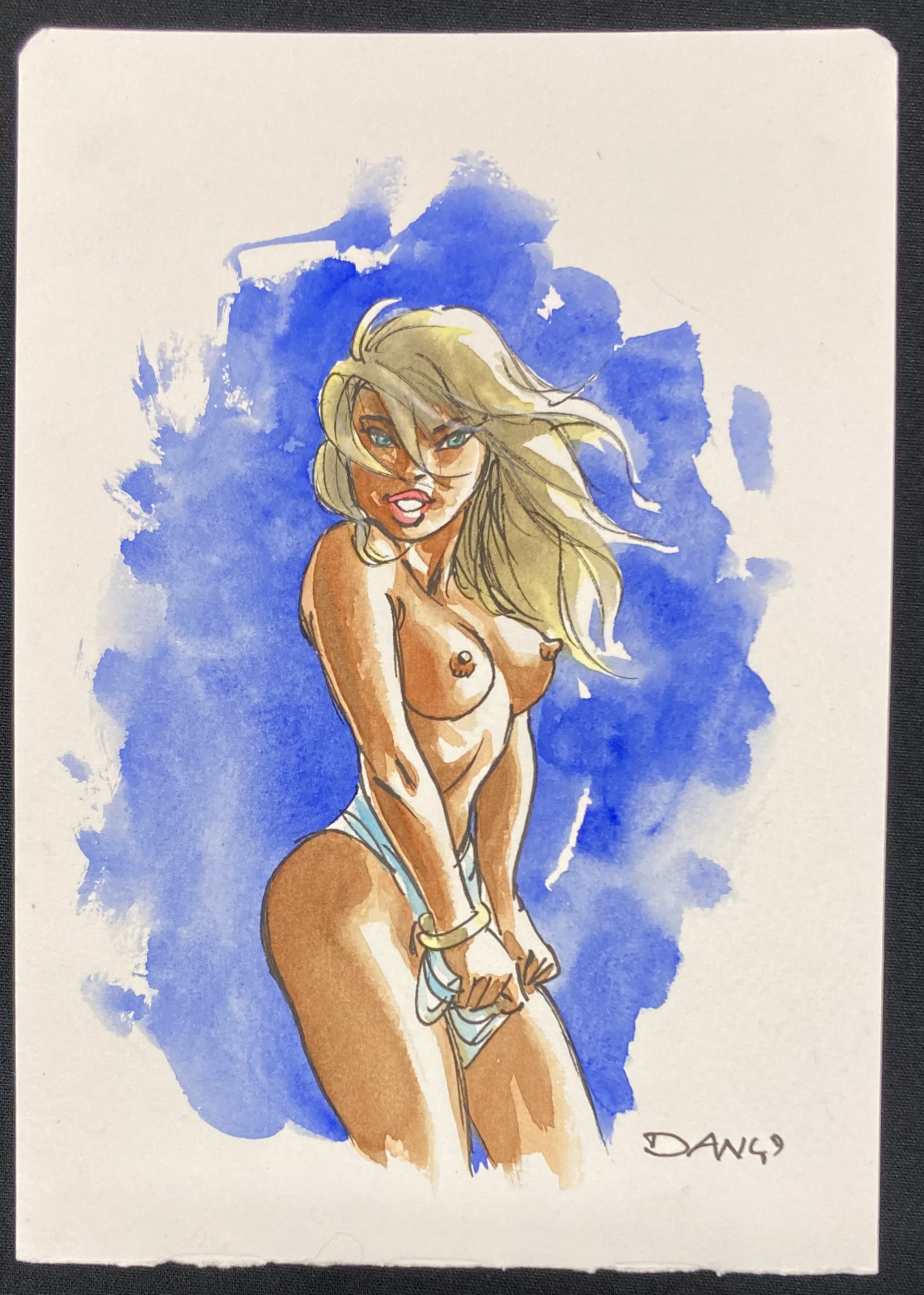 NIF/1025 Ravissant dessin original de la collection « Où voulez vous en venir ? » aux encres de couleurs, encadrée. Format du cadre: 32,40 cm / 26,20 cm