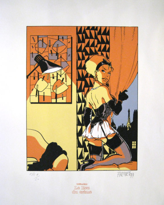 Cet sérigraphie en noir & blanc a fait l’objet d’un tirage à 160 numérotés et signés par l’auteur . datant de 1995 annonçant par avance la sortie de la série de Tatiana K . Sans certitude, il devait s’agir ...