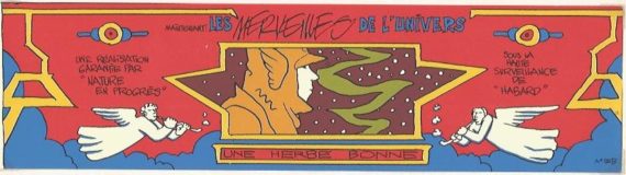 Cet ex libris est en 2 parties la première étant un celluloïd transparent noir et blanc, la seconde est juste les colorisations en offset des couleurs sans les noirs. C’est en s’inspirant de la façon dont ...