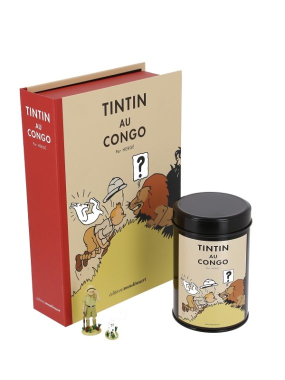 Épuisé Tintinimaginatio Hergé Tintin et Milou au Congo – Portfolio 110 lithographies + figurines en plomb + boîte de café Bio 195,00€