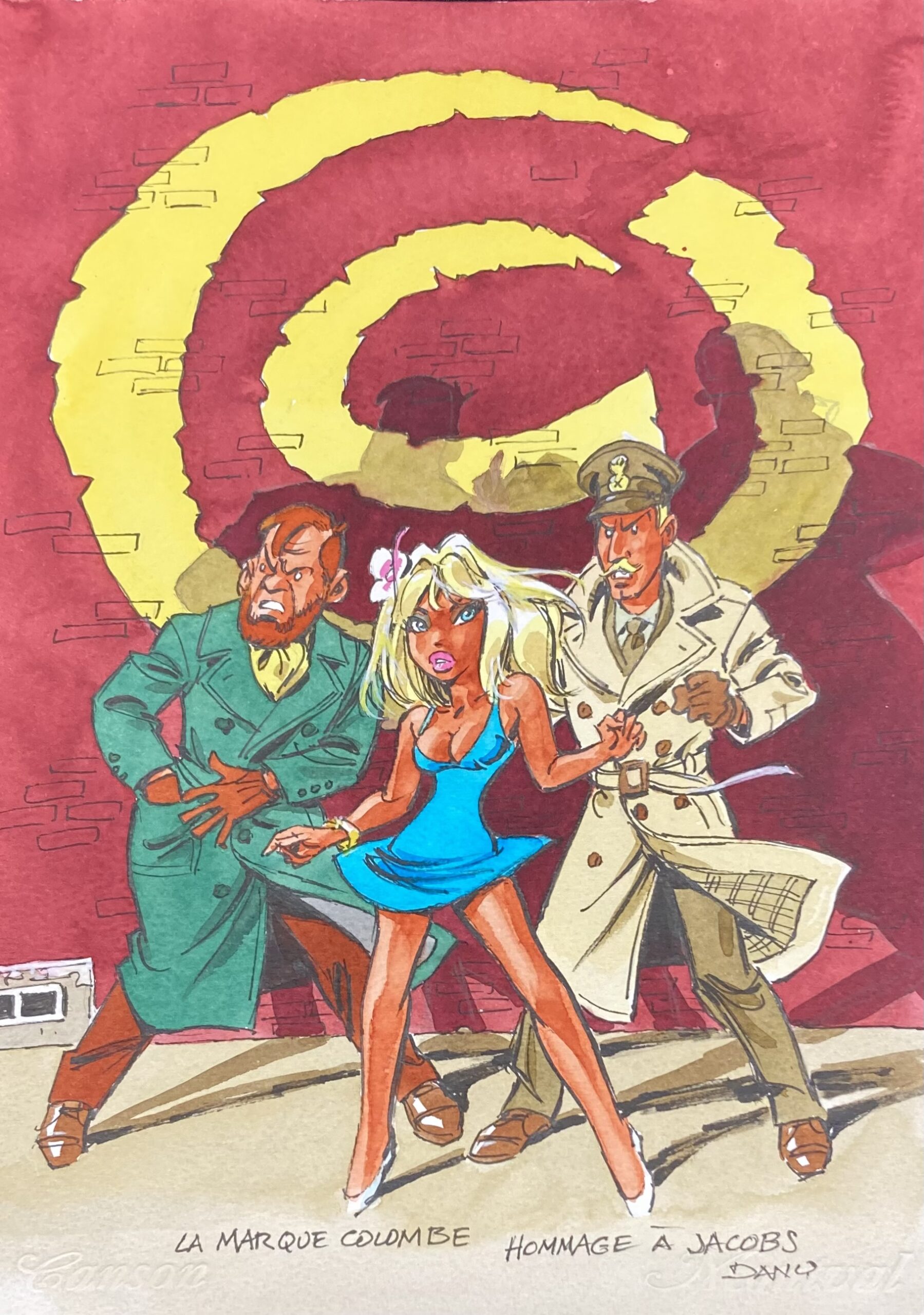 Épuisé Auteurs, Blake et Mortimer / Jacobs, Dany, Dessins / Dédicaces / Planches, La Boutique Dany – Colombe et Blake et Mortimer « La Marque C » / Dessin original couleurs (2024) M 799,00€
