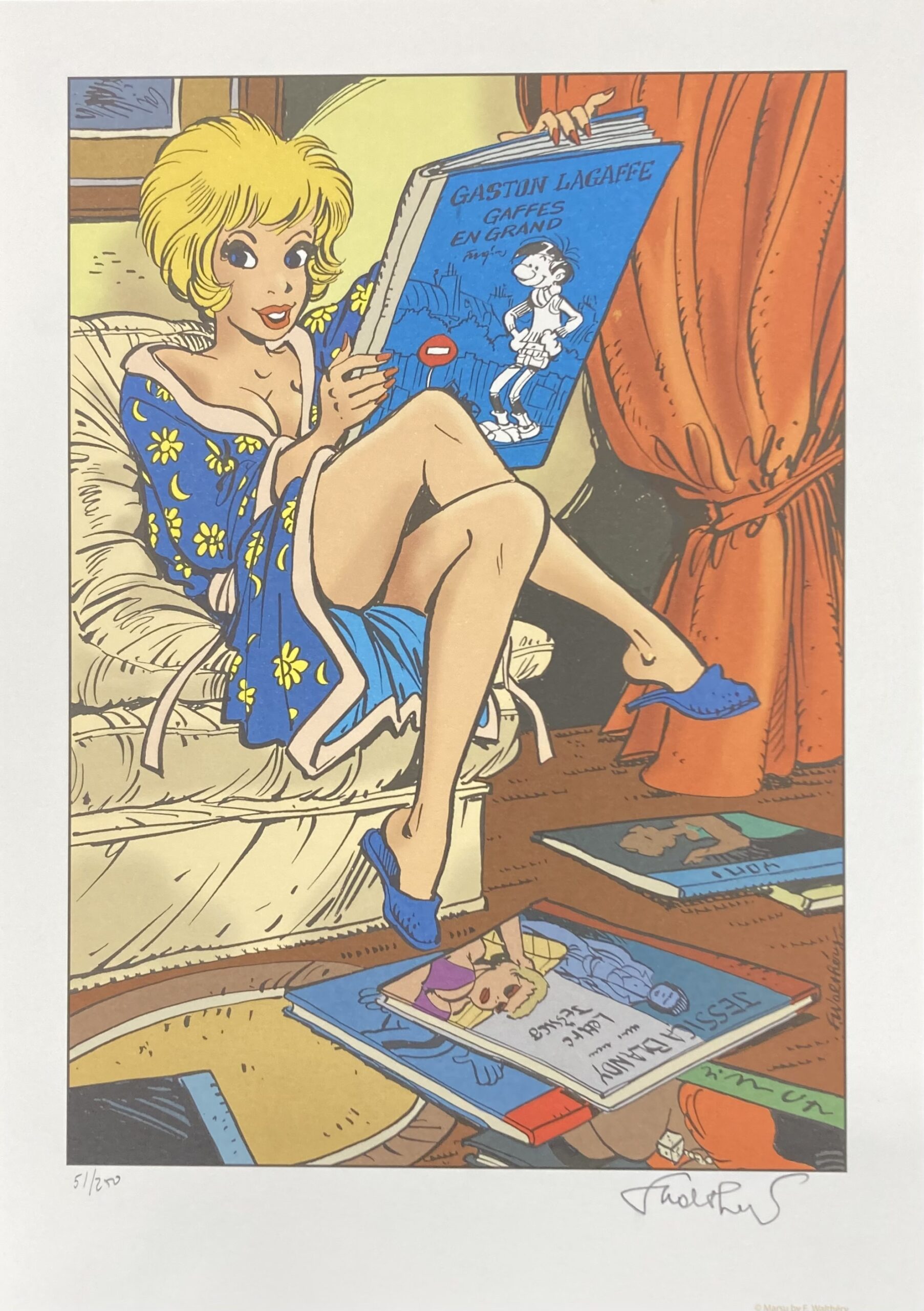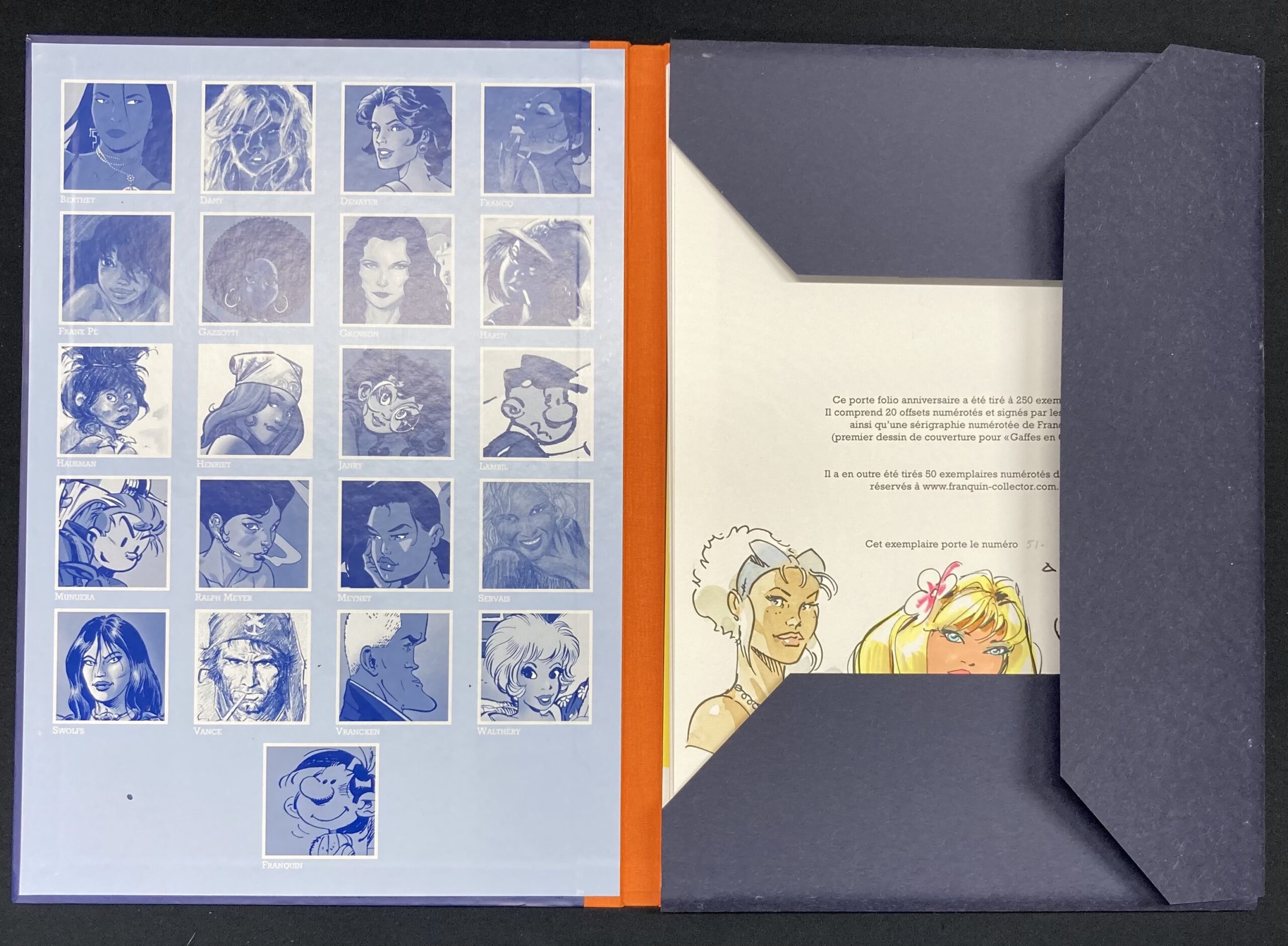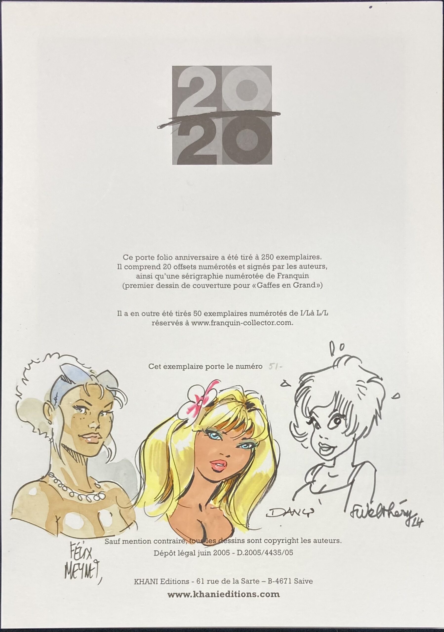 Il a fait l’objet d’un tirage à 250 exemplaires numérotés et signés par chacun des auteurs sur leur page respective à l’exception de Franquin qui nous avait quitté avant cette parution. Les auteurs suivant y ont participé: Berthet, Dany, Denayer, Francq, Frank Pé, Franquin (dessin inédit et exclusif), Gazzotti, Grenson, Hardy, Hausman, Henriet, Janry, Lambil, Meynet, Ralph Meyer, Munuera, Servais, Swolfs, Vance, Vrancken et Walthéry.