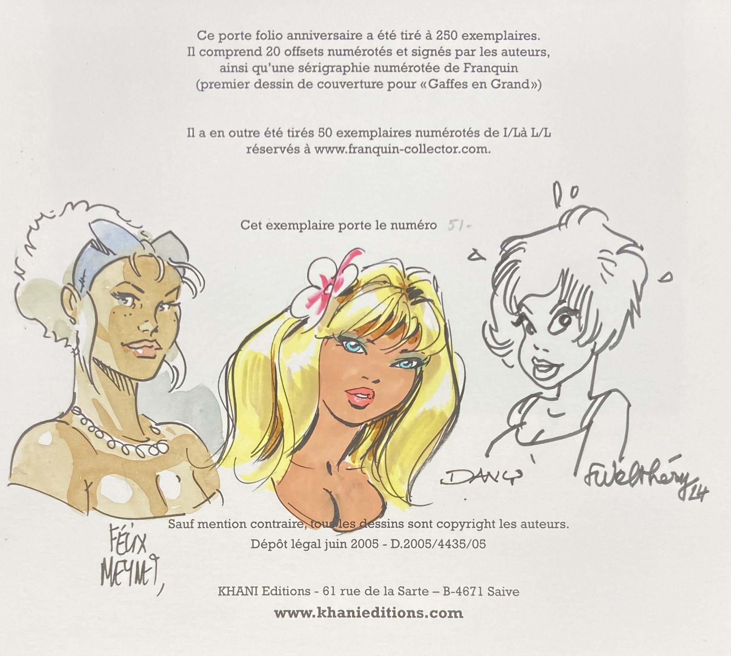 Cet portfolio est agrémenté de 3 dédicaces non nominative réalisées par Dany, Meynet & Walthéry en couleurs pour les 2 premiers auteurs !!