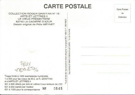Cette carte postale a fait l’objet d’un tirage à 1000 exemplaires signé par l’auteur au dos. Les 650 premiers exemplaires sont signés par l’auteur.