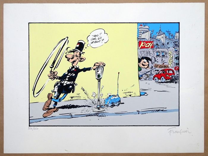 Cette superbe sérigraphie a fait l’objet d’un tirage limité à 350 exemplaires numéroté et signé par Franquin.