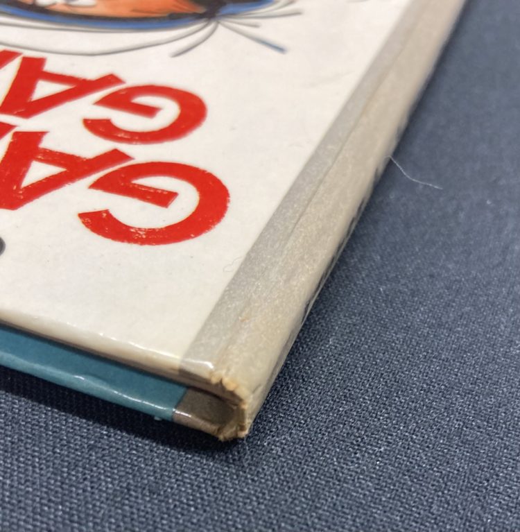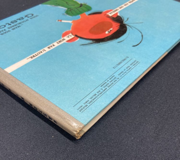 Très bel état, traces de scotch en pages de gardes, débordant en pages de titres, coins pointus avec de légères traces de frottements, haut et bas du dos légèrement frottés, très belles agrafes et cahier.
