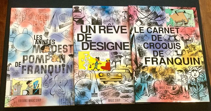 Ce coffret contient les 3 tirages de têtes Modeste et Pompon. Ils ont fait l’objet d’un tirage à 675 exemplaires numéroté et signé chacun par Franquin. Les scénarios ont été écrit par Greg et Goscinny. C’est la seule édition à la fois intégrale de ces gags du Journal de Tintin et chronologique par rapport au prépublication du célèbre hebdomadaire.