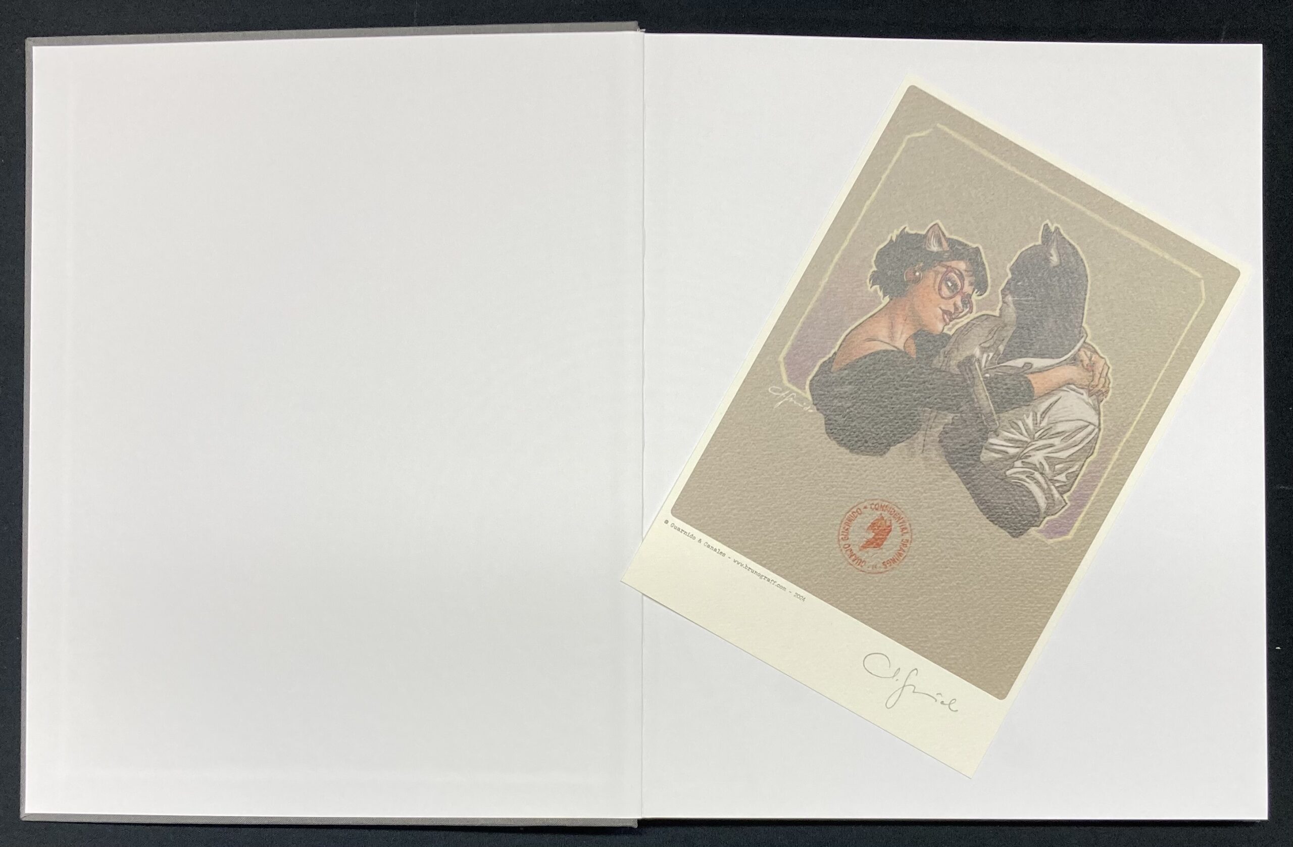 Cet ouvrage a fait l’objet d’un tirage limité à 350 exemplaires signé par l’auteur sur l’ex libris qui l’accompagne et numéroté en HC (Hors Commerce) en page de titre. C’est l’édition réservée pour le marché hollandais. Les couleurs, l’image de couverture et l’ex libris sont différentes pour chaque version. Elle reprend plus de 200 illustrations de Juanjo Guarnido, dont 90% sur la série Blacksad, qui pour beaucoup sont très peu connues, inédites ou publiées uniquement aux Etats-Unis.