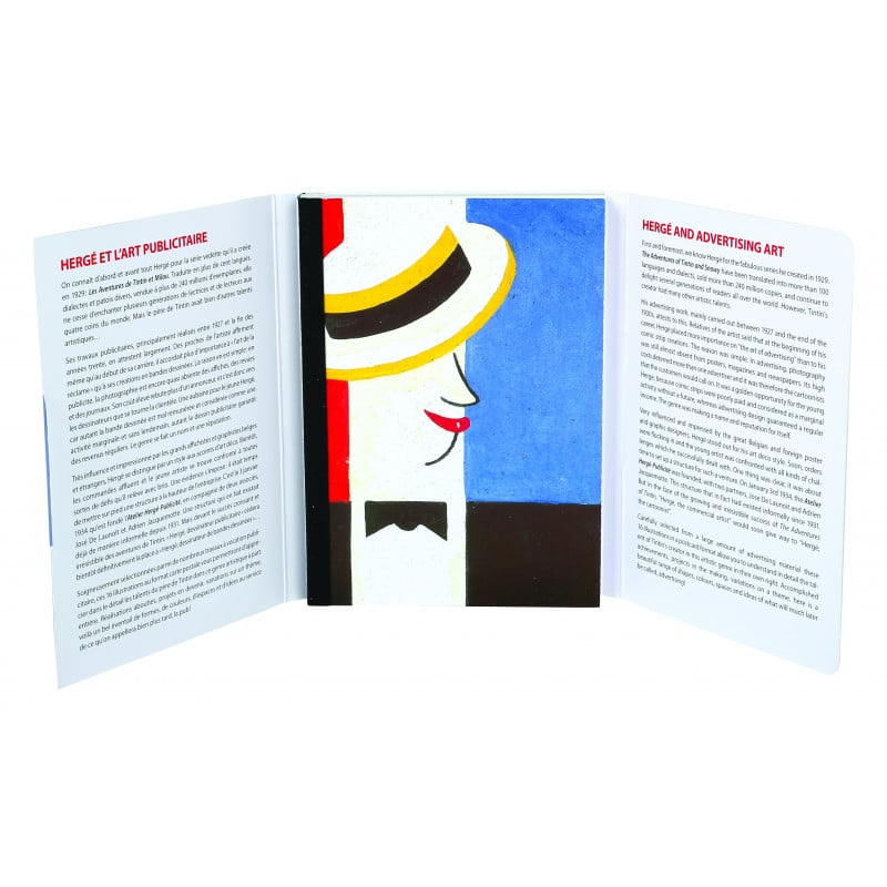 - Le saviez-vous ? ? Dans les années 1930, Hergé imaginait faire carrière dans… la publicité ! On connait d’abord et avant tout Hergé pour la série vedette qu’il a créée en 1929 : Les aventures de Tintin & Milou. Mais le père de Tintin avait bien d’autres talents artistiques… Parallèlement à la bande dessinée et à ses responsabilités de rédacteur en chef du Petit Vingtième, l’ambitieux dessinateur se consacre aussi à la création d’affiches et de campagnes publicitaires. Ses travaux publicitaires principalement réalisés entre 1927 et la fin des années trente, en attestent largement. En 1934, il créera L’Atelier Hergé pour faire face aux commandes qui lui sont faites dans ce domaine. Soigneusement sélectionnées parmi de nombreux travaux à vocation publicitaire, ces 16 illustrations au format carte postale composant ce carnet vous permettront d’apprécier dans le détail les talents du père de Tintin dans ce genre artistique à part entière. Réalisations abouties, projets en devenir, variation sur un thème, voilà un bel éventail de formes, de couleurs, d’espaces et d’idées au service de ce qu’on appellera bien plus tard, la pub !
