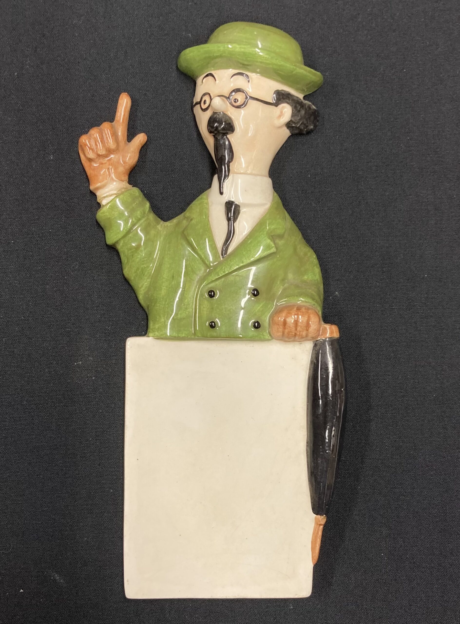Figurine bloc-notes représentant le professeur Tournessol (des aventures de Tintin) en céramique polychrome sculptée et réalisée à la main par La Chaise Longue. Rare édition originale limitée.