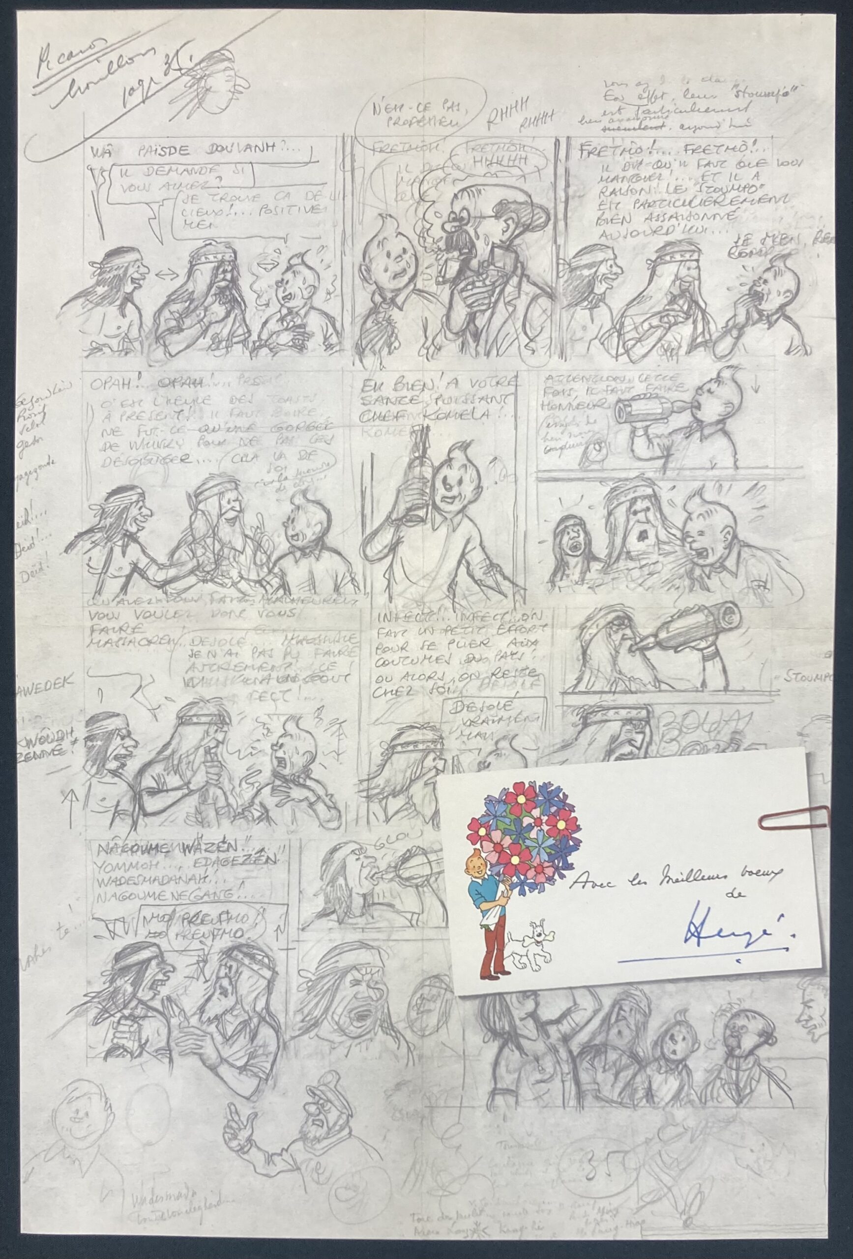 Hergé – Tintin / Carte de voeux 1974 Crayonné de Tintin et les Picaros – Signée (1975)