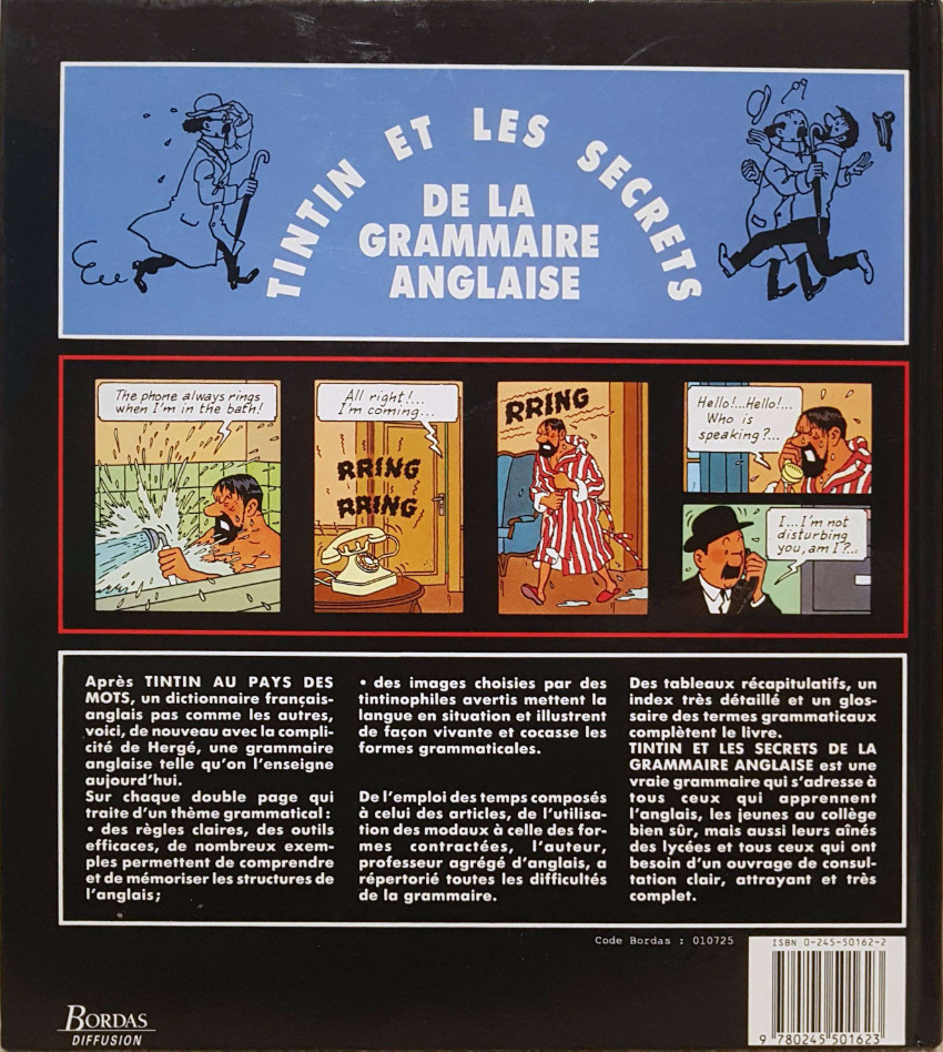Les mots essentiels du débutant avec la phonétique, les catégories, les différences de sens, etc., un index français-anglais illustré pour voyager d’une langue à l’autre, tout l’humour des personnages de Hergé pour illustrer le sens des mots, et aussi : une introduction à la grammaire et la liste des verbes irréguliers.