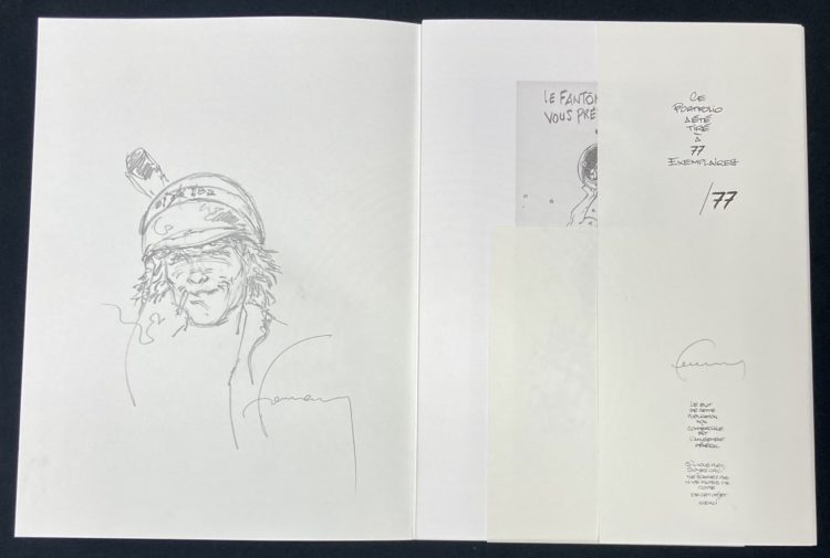 Ce portfolio a fait l’objet d’un tirage à 77 exemplaires numéroté et signé par l’auteur sur le justificatif de tirage qui l’accompagne. Il contient 7 illustrations inédites. Il est de plus agrémenté d’une dédicace non nominative