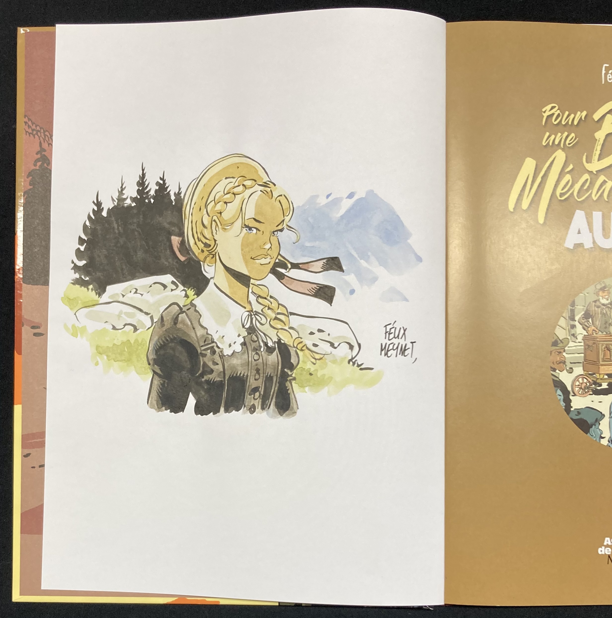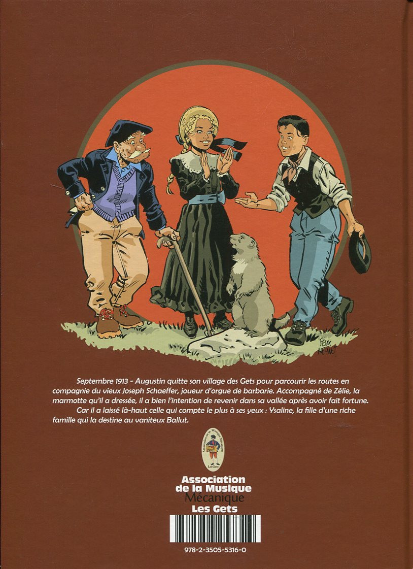 L’aventure se déroule à la veille de la Grande Guerre et vous emportera des chalets d’alpage de la Mouille Ronde aux profondeurs de la Forêt Noire. Les personnages sont attachants et vont connaître bien des péripéties. Les évènements et rebondissements s’enchaînent et tiendront le lecteur en haleine jusqu’au dénouement. Cette édition est le fruit de repérages et de recherches documentaires approfondis tant sur l’histoire locale que sur le domaine très spécifique de la musique mécanique, que Félix s’est bien approprié. Passionné d’histoire de la Savoie, il a pu découvrir le rôle des colporteurs de musique savoyards dans la diffusion des airs populaires à travers toute l’Europe. L’ouvrage est composé de 42 pages couleur et compléter d’un cahier de six pages présentant Les Gets. La dernière page de l’histoire laisse la porte ouverte à une suite … En attendant,