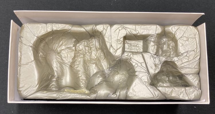 Comme neuf, le fond de boite est fendu à 2 extrémités de la longueur (réparable).