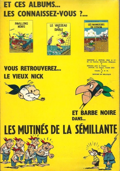 Étiquettes : 3é pages avec les premiers hommes, Amazonie BD, Barbe Noire, Bobosse, Dupuis, Edition Originale, Hultrasson, Journal de Spirou, L'îlot mouvant, Le petit manuel du parfait naufragé, Le vieux Nick et Barbe Noire, Les blaireaux, Marcel Remacle, Rouchiol le terrible, Vicq