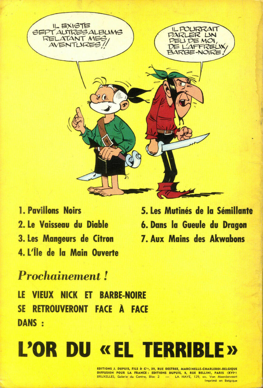 Étiquettes : 3é pages avec les premiers hommes, Amazonie BD, Barbe Noire, Bobosse, Dupuis, Edition Originale, Hultrasson, Journal de Spirou, L'îlot mouvant, Le petit manuel du parfait naufragé, Le vieux Nick et Barbe Noire, Les blaireaux, Marcel Remacle, Rouchiol le terrible