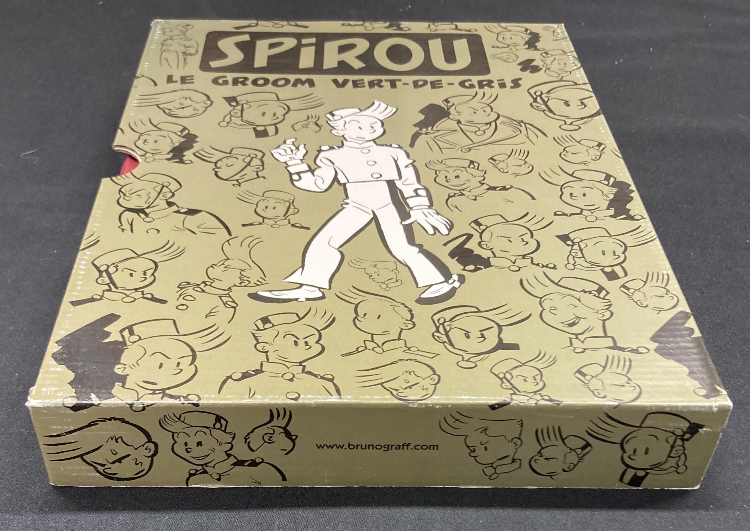 Cet ouvrage a fait l’objet d’un tirage limité à 420 exemplaires numéroté et signé sur l’un des 2 ex libris qui l’accompagne. Il contient deux tomes à dos papier rouge et à couverture inédite, dans une imitation des premiers Spirou de Franquin des années 1950. Le premier contient l’album en noir et blanc, rehaussé de 4 hors textes couleur inédits, et le second contient le making-of avec de très nombreux documents et commentaires des deux auteurs sur plus de 80 pages. Ce tirage a bénéficié d’un lancement en avant-première dans les librairies bruxelloises où presque tout le stock réservé aux libraires fut vendu avant même le lancement officiel à Angoulême, seulement une semaine plus tard.