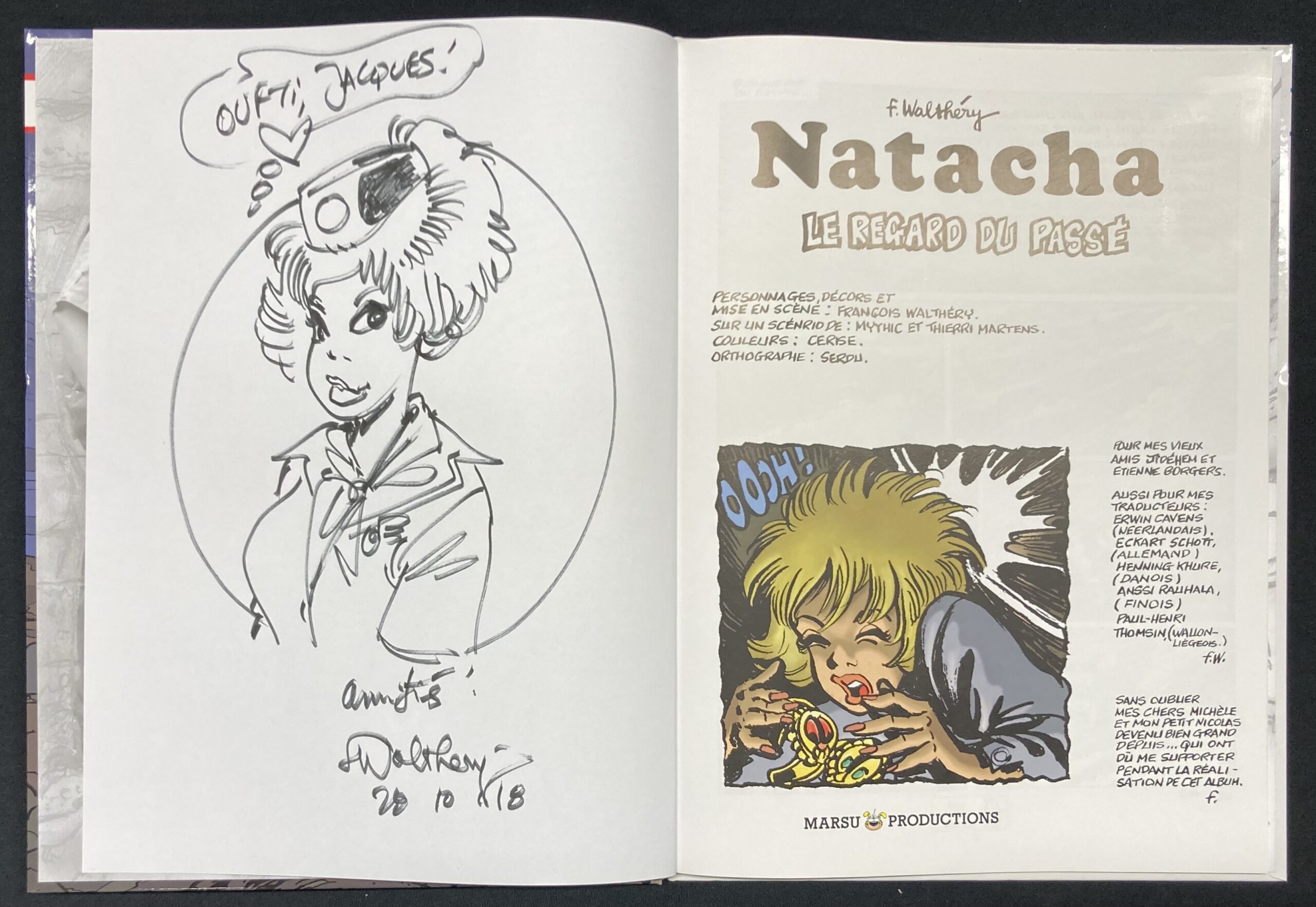 Étiquettes : Amazonie BD, Bardaf, Benoit Brisefer, Betty Strip, Dans la peau d'une femme, Dédicace, Dupuis, Edition Originale, François Walthéry, Jacky et Célestin, Laudec, Le P'tit bout d' Chique, Le vieux Bleu, Liège, Mittei, Natacha, Natacharme, Oufti les amis de François Walthéry, Pipo, Rubine, Sabena, Tchanchès, Timbre