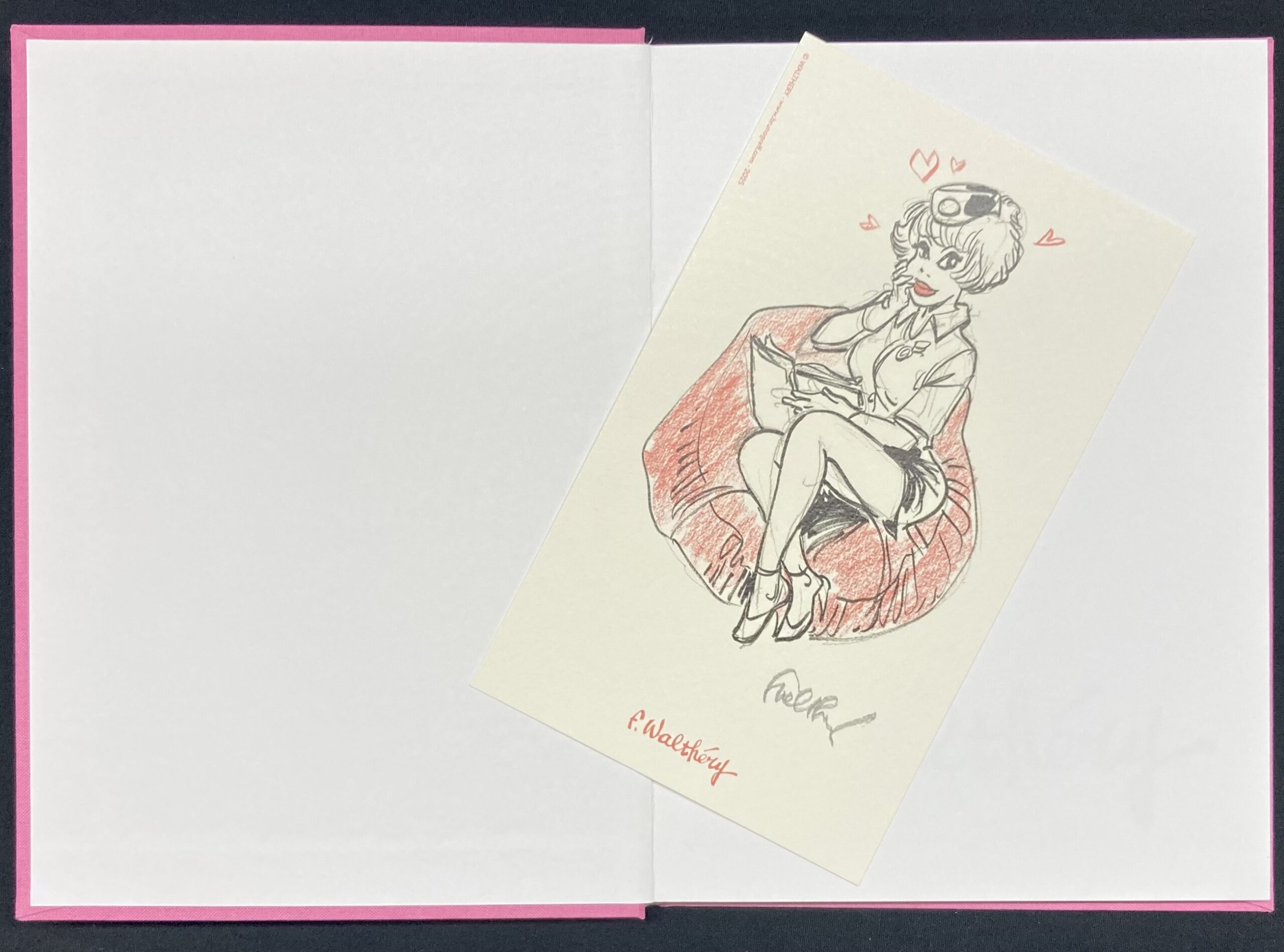 Cet ouvrage a été édité à l’occasion de l’exposition “Dany, Hermann, Meynet & Walthéry” du 6 juin au 27 juin 2024, à la Galerie Passerelle Louise de Bruxelles. Il a fait l’objet d’un tirage limité à 69 exemplaires signé par l’auteur sur l’ex libris qui l’accompagne et numéroté en page de titre. Il reprend les illustrations mises à la vente de cette exposition. Il est rare et à ne pas manquer pour les amateurs des jolies filles que l’auteur s’amuse à dépeindre !!