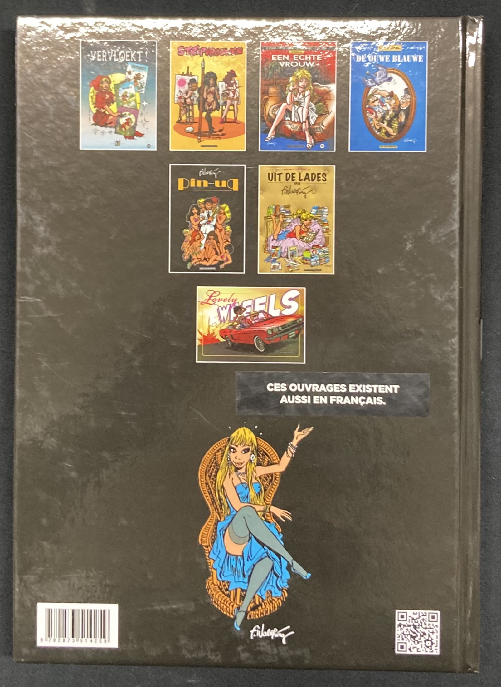 Ce recueil devait être édité en français et en néerlandais, mais malheureusement l’imprimeur n’a édité que la version néerlandaise. Donc les 100 exemplaires en français n’existe pas. Mais afin de pouvoir le mettre à disposition des lecteurs de langue française, il a été « sacrifiés » 100 exemplaires néerlandaise pour en faire une version française qui est celle-ci. Il y est offert un livret noir e tblanc de 24 pages supplémentaire explicatif des légendes en françis, un petit opuscule titré « Demande spéciale 2 » comprenant un certains nombres de dessins qui ne se trouvent pas dans le gros recueil monogrammé . Bref si vous n’avez pas compris,…. c’est bien le tirage de tête dans le contenu est en néerlandais avec un supplément des traductions française ave un mini album qui est numéroté et signé tiré à 100 exemplaires en supplément…… Capito ??????????????? Il n’existe pas autrement !!