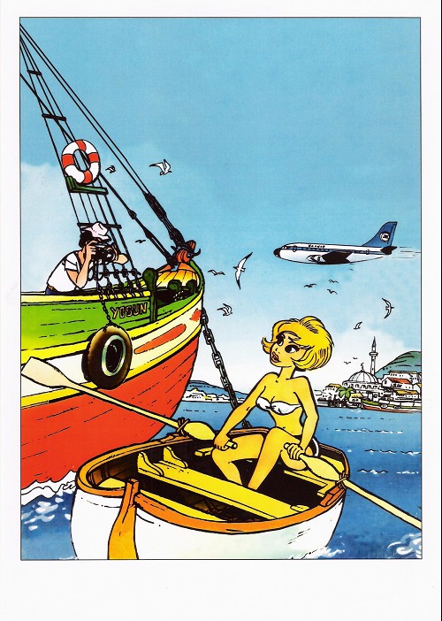 Il contient 7 ex libris couleur qui se glisse dans une pochette plastique transparente et une pochette avec 12 cartes postales reprenant chaque visuels des ex libris avec le titre de l’album en néerlandais et sans le titre.